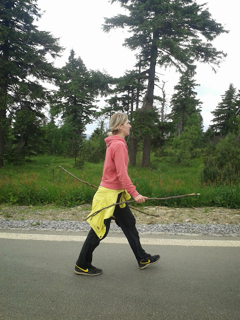 Víceméně jsme pořád v kuse šli a dělali minimálně zastávek. Byly 3 občerstvovačky, kde jsme měli jasnou strategii: Verunka půjde pro podpis, že jsme tam byli a Ferdík nabere kapsy banány, jablky a snack tyčinkami a rychle se jde dál. To se nám podařilo a získávali jsme stále větší náskok před ostatními „chodci“… Malinko krizi jsme měli při dlouhém cca 6km prudkém stoupání na Klínovec, kde jsme za oněch 6km nastoupali cca 650m.