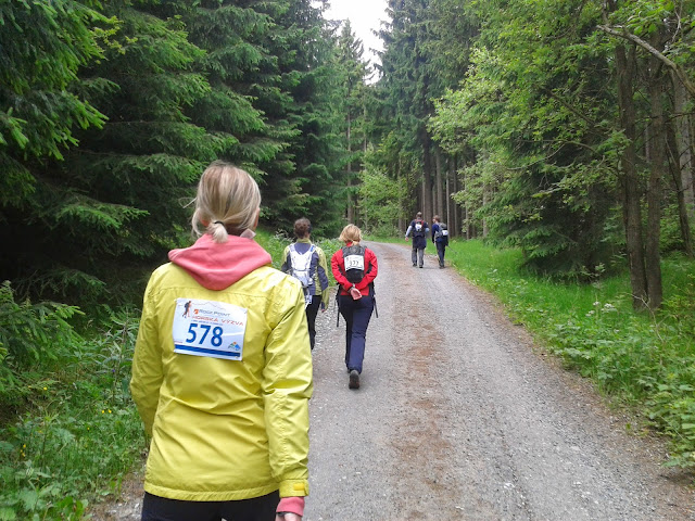 S Verunkou jsme se před pár měsíci přihlásili do závodu s názvem Horská výzva. Je to série asi 4 závodů za rok vždy na jiném místě a my jsme vybrali Krušné hory, kde byl start i cíl na Božím daru. V autě cestou jsme se ale rozhodli, že namísto jednoduché etapy 18km zkusíme dát tu delší s délkou 37km. To už totiž je výzva. Jen pro představu, ta nejdelší etapa má 70km. Celý závod většina lidí bere jako běžecký, ale my jsme se chystali jít rychlým krokem. To se nám povedlo a dokonce jsme občas i popoběhli a nakonec z toho byl výborné tempo 10:48 na 1 km. Celkem jsme tedy dali 37km za 6 hodin 43 minut.