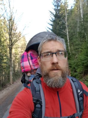 Nejsou to první Eliščiny Krkonoše, ale dohromady už tak 3tí nebo 4té, takže by se dalo říct, že to tu už zná. I když prvně v Peci a v krásném ubytování. Ale tentokrát to bylo poprvé, co měla na horské hřebeny výhled z krosničky, kterou si celkem zamilovala. Párkrát v ní i usnula a prospala skoro celé dlouhé stoupáky.