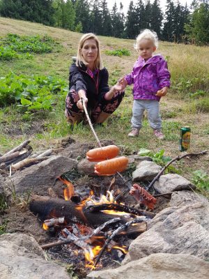 Asi jsme zatim nikdy nemeli ubytovani na takoveto samote, kam jsme si poctive vynosili veci z auta z parkoviste pod kopcem. Krasna chalupa se vsim potrebnym se libila hlavne Elisce, ktera mohla objevovat dalsi mistnosti a komurky.