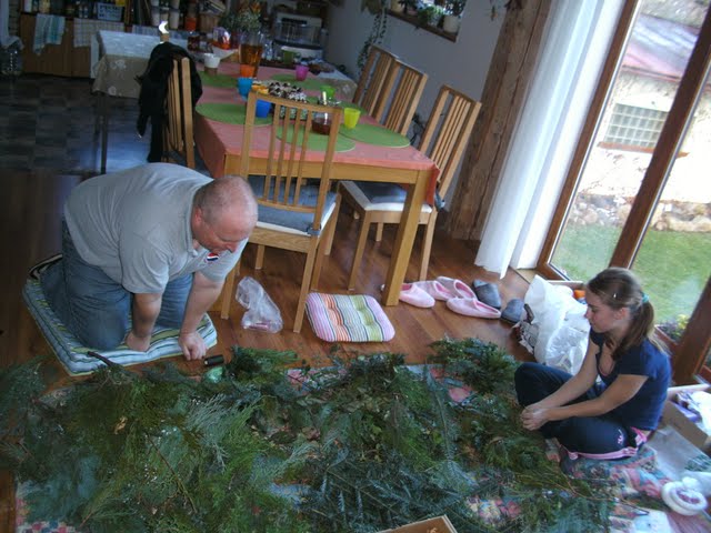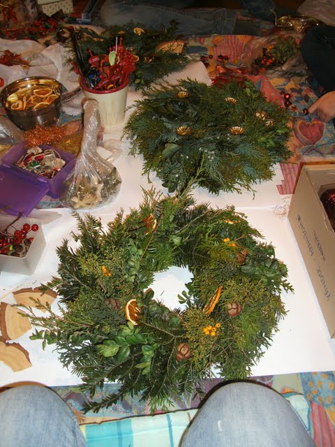 O víkendu proběhla už zaběhlý 3. ročník Popovického věnčení u Lenky v Popovicích. Pár lidí se sejde a pustí se do vytváření vánočního věnce. Letos se věnčení extra povedlo, Verunka zavile uvila věnec pro rodinku do Ameriky, Ferdik uvil věnec možná do Podbaby, možná na Ortenáč:-) Závěr večera byla pak véča v Grossettu v Dejvicích s Helenkou a frajerem Christiánkem.
